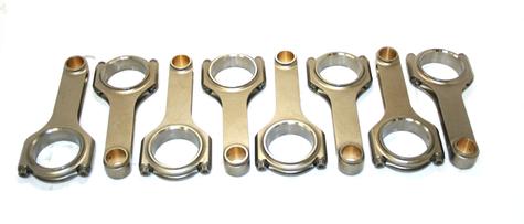 CNC Machined Beam Forged Steel (5140 Steel) rods are recommended for engines in bracket, oval track, and almost all street and strip applications up to 500 horsepower. They are better than a stock rod but not as strong as an H-Beam. Mild Power Adders can be used. Recommended Torque is 45lbs. w/Moly Lube.